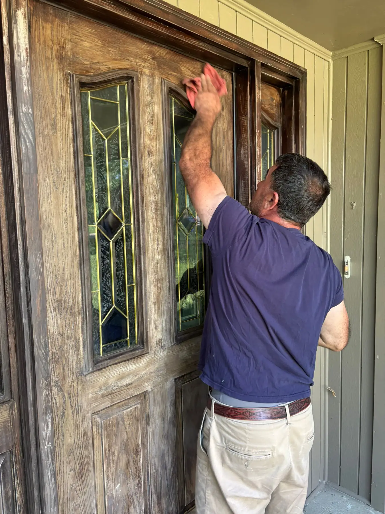 Today at Craft&Repair LLC, we had a productive day carrying out an Entry Door Finishing job over at Kettering. The task involved sanding the entry doors carefully, patching up minor cracks with wood filler, and allowing it to dry properly. Once this was done, we gave the doors a fresh coat of stain followed by a water-resistant clear finish. This not only protected the doors from everyday wear and tear, but also significantly improved their overall aesthetic. If you are looking for similar work to be done, don’t hesitate to reach out to us! Get an estimate today!